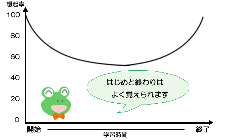 しっかりと覚えたいことは、学習の始めの方か終わりの方で覚えるようにすると、効果的だと考えられるわけです。